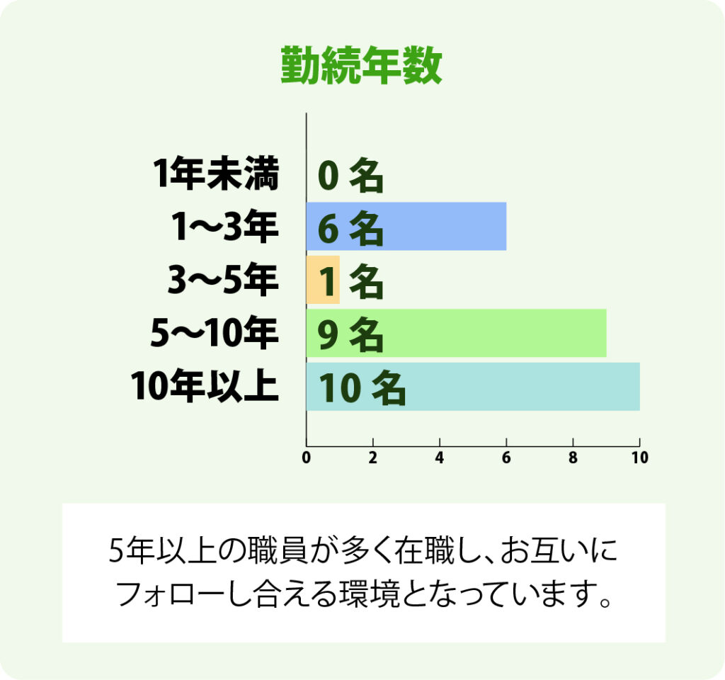 ここで、紫野の会で働いている職員の情報を数字でご紹介します。